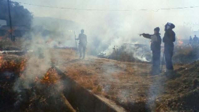 消防署も総出で周辺から見守ってくれる。戸外で物を燃やさないのが昨今の常識になっていて、煙の立ち昇る光景などついぞ見られないが、この野焼きばかりは例外のようだ。