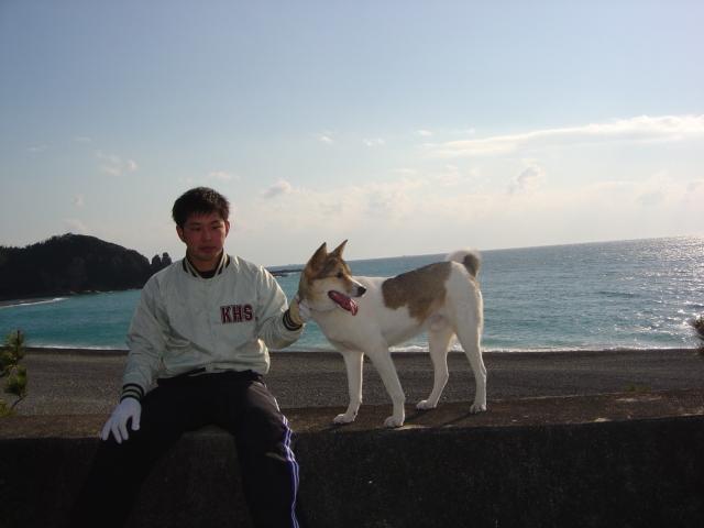 バックが地元の海岸で通称「碁島」(碁石ヶ浜)という。紀伊半島の西側の海はこのあたりを境にして海水の質が変わると、漁師の方に聞いたことがある。ここを境に串本方面に南下するほど透明度がます。車で3分ほどでこの碁島に着くが、よく夜釣りに通った時期がある。